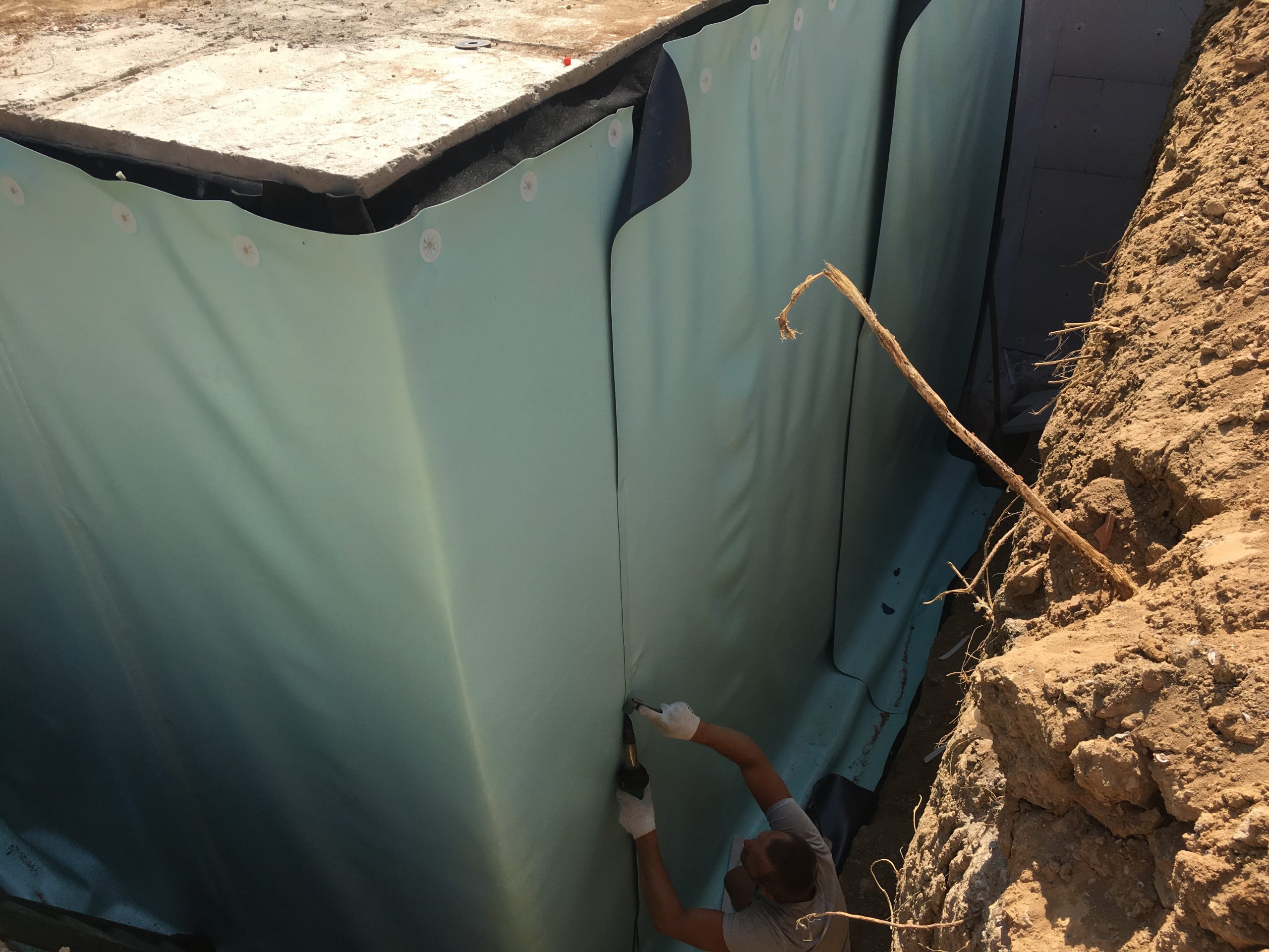 Hydroizolacja jest jednym z najważniejszych i decydujących materiałów przy budowie każdej budowli. Aby zapobiec przedostawaniu się wody do konstrukcji fundamentu, stosuje się nieuzbrojoną membranę PVC Flexiplast L o grubości 1,5 lub 2,0 mm. W przeciwieństwie do materiałów bitumicznych (papy), membrana PVC jest mocowana do podłoża mechanicznie, a materiał jest spawany gorącym powietrzem. Flexiplast L jest odporny na korzenie i rozwój mikroorganizmów, a także posiada jasnozieloną warstwę sygnalizacyjną. Taka hydroizolacja będzie służyć przez ponad 50 lat.