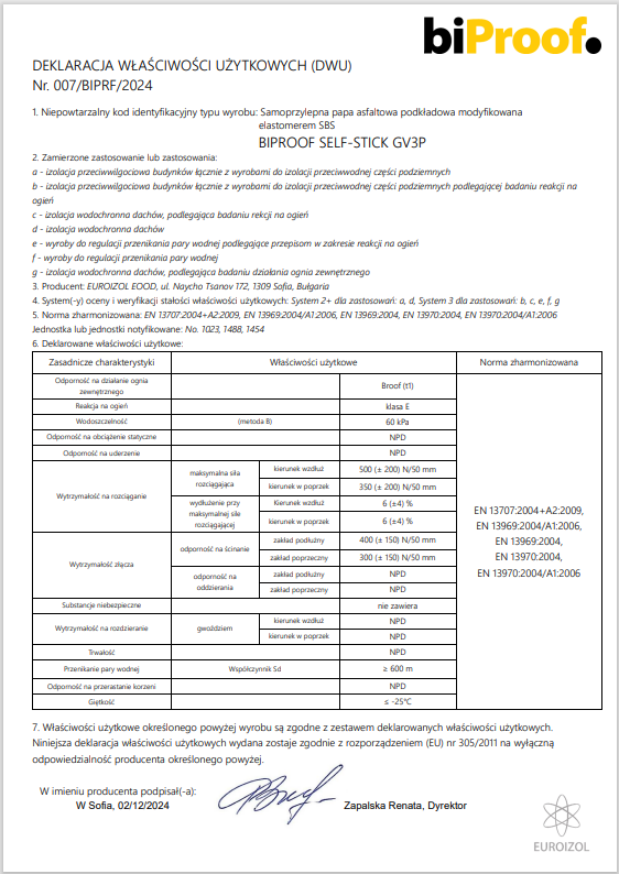 Specjalistyczna polimerowo-bitumiczna membrana o grubości 4,2 mm przeznaczona do hydroizolacji dachów zielonych. BIPROOF® GREEN została wykonana na bazie masy bitumicznej modyfikowanej SBS o giętkości -25 °C z dodatkiem specjalnych substancji, które chronią przed przerostem korzeni roślin oraz korozją biologiczną (zgodnie z normą EN 13948). Stosowana jako warstwa wierzchnia w wielowarstwowych systemach dachowych (dachy zielone i balastowe) zarówno w metodzie tradycyjnej, jak i odwróconej.