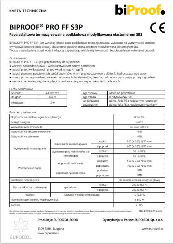 Materiał podkładowy (2,3mm) obustronnie foliowany wykonany na kompozytowym nośniku poliestrowym przystosowanym również do mechanicznego montażu. Wykonany na specjalnych miękkich asfaltach zapewnia – wraz z obustronną folią PP – znakomity wytop i szybkie łączenie zarówno z podłożem, jak i materiałami wierzchnimi.