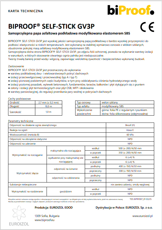 Wysokiej jakości samoprzylepna membrana polimerowo-bitumiczna o grubości 2,0 mm, która wykonana jest z bitumu modyfikowanego SBS o giętkości -25 °C na bazie osnowy z poliestru o wysokiej wytrzymałości. Stosowana jest jako warstwa spodnia w dwuwarstwowych i wielowarstwowych systemach pokryć dachowych, do hydroizolacji zwartych budynków podziemnych oraz jako warstwa paroizolacyjna.