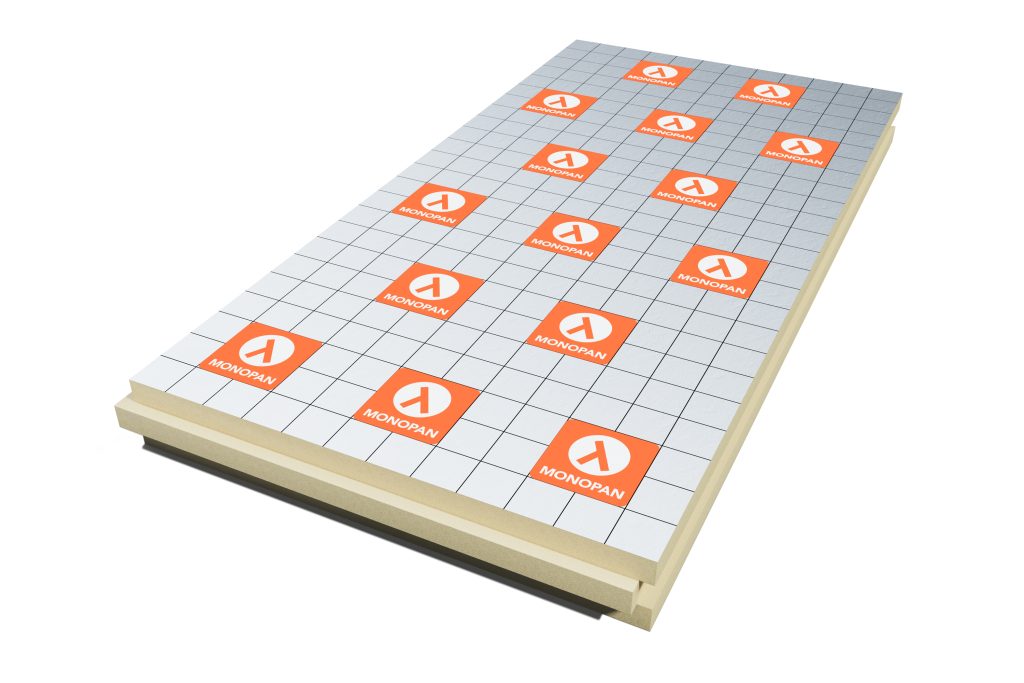Różnorodność okładzin: Płyty PIR MONOPAN© mogą być pokryte folią aluminiową, welonem szklanym, papierem kraftowym lub wielowarstwowymi powłokami polimerowymi, umożliwiając zastosowanie w dachach, elewacjach, podłogach i ścianach.